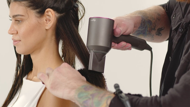タオルドライした髪や乾いた髪に、全体がしっとりするくらいスプレーし、ブラシで整えた後、ドライヤーの温風またはヘアアイロンで仕上げます。